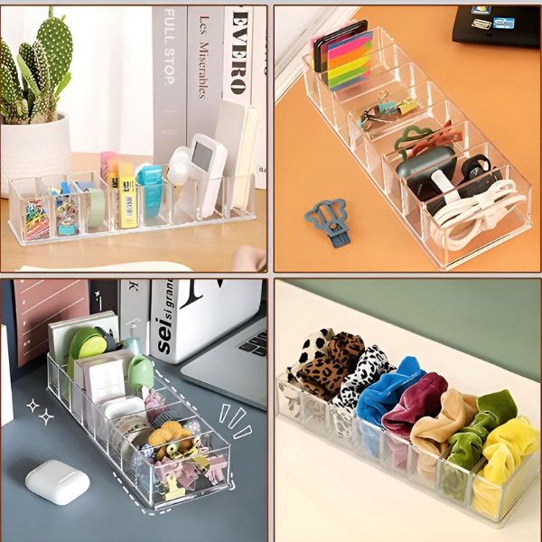 📦 Το σετ περιλαμβάνει 3 οργανωτές, ο καθένας με 5 ρυθμιζόμενα διαμερίσματα.