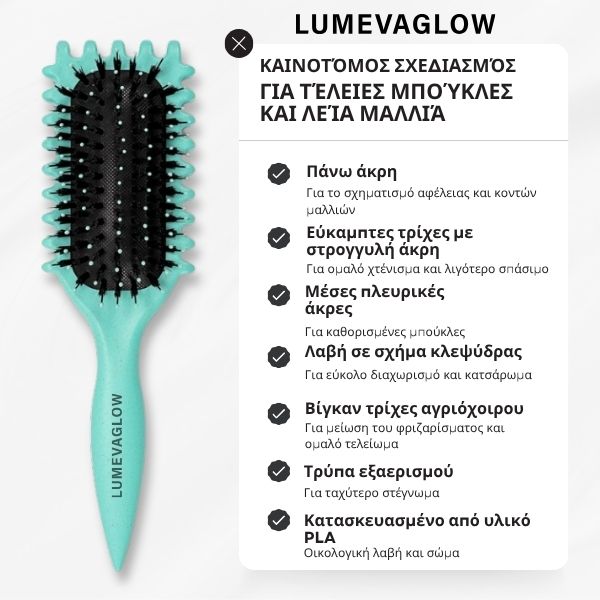 Η βούρτσα μας λειαίνει κάθε τούφα για καθορισμένες μπούκλες χωρίς φριζάρισμα όλη μέρα.