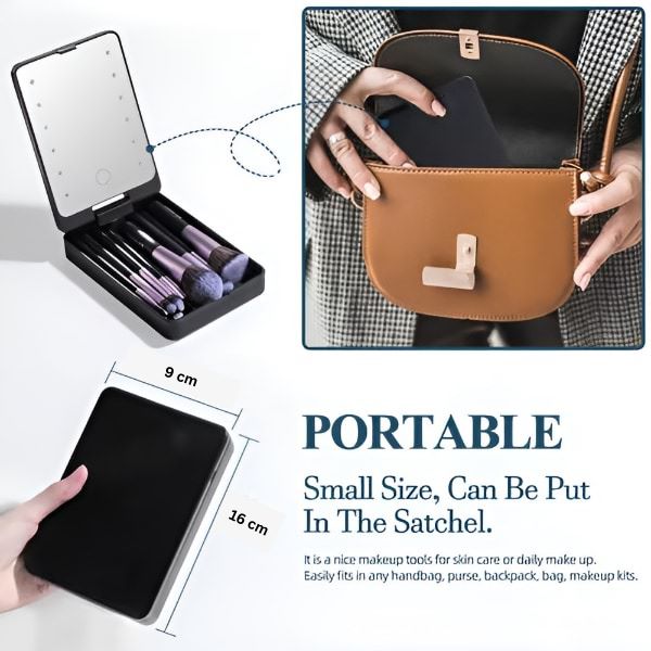 Το σετ πινέλων και ο καθρέφτης LED χωράνε τέλεια στην τσάντα σας, ώστε να μπορείτε να φρεσκάρετε το μακιγιάζ σας με ευκολία όπου κι αν σας πάει η μέρα σας.